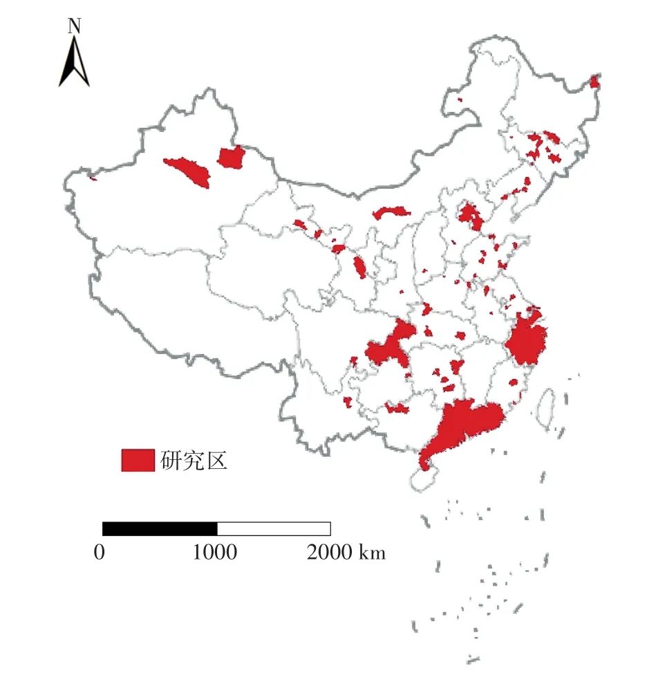 圖2 近十年文獻(xiàn)中我國(guó)土壤重金屬源解析研究所涉及的研究區(qū)域圖