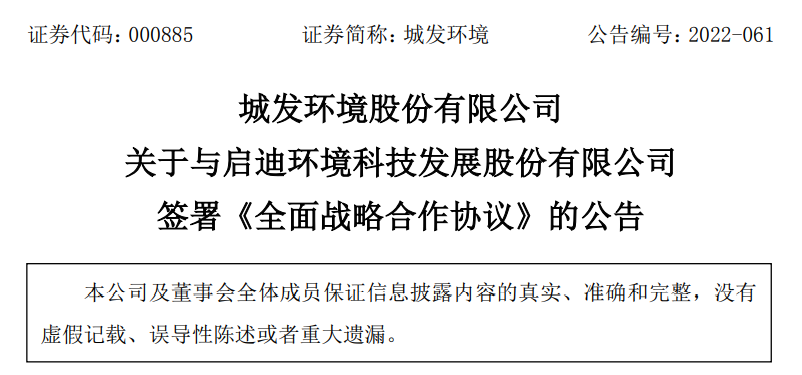 據(jù)公告顯示,終止本次重大資產(chǎn)重組的原因是城發(fā)環(huán)境自籌劃本次重大資產(chǎn)重組事項以來,嚴(yán)格按照相關(guān)法律法規(guī)的要求,與交易對方及其他相關(guān)雙方持續(xù)進行磋商與研討,并根據(jù)磋商結(jié)果積極推進相關(guān)盡職調(diào)查、審計、信息披露、內(nèi)部決策等工作。鑒于本次重大重組方案論證歷時較長,相關(guān)市場環(huán)境較本次交易籌劃之初發(fā)生較大變化。經(jīng)審慎研究分析,為切實維護城發(fā)環(huán)境及全體股東利益,經(jīng)與啟迪環(huán)境協(xié)商,雙方?jīng)Q定終止本次重大資產(chǎn)重組事項。根據(jù)法律法規(guī)及公司章程規(guī)定,經(jīng)雙方充分溝通及友好協(xié)商,城發(fā)環(huán)境董事會經(jīng)審慎研究后,依法履行了相關(guān)審議程序,終止本次重大資產(chǎn)重組。同時,另一則公告顯示,城發(fā)環(huán)境與啟迪環(huán)境簽署的戰(zhàn)略框架性協(xié)議。合作內(nèi)容、合作機制與合作期限等事項的具體實施尚存在不確定性,具體的項目合作協(xié)議或項目開展方案尚需雙方進一步協(xié)商確定。公告顯示,基于城發(fā)環(huán)境在環(huán)保項目建設(shè)、區(qū)域市場拓展、環(huán)保技術(shù)研發(fā)及人員交流等方面與啟迪環(huán)境已經(jīng)開展了深入、全面的合作,具備良好的合作基礎(chǔ),為延續(xù)雙方友好合作關(guān)系、充分發(fā)揮雙方在環(huán)保、能源領(lǐng)域的發(fā)展優(yōu)勢,公司與啟迪環(huán)境共同簽署了《全面戰(zhàn)略合作協(xié)議》,以進一步推動雙方交流合作。