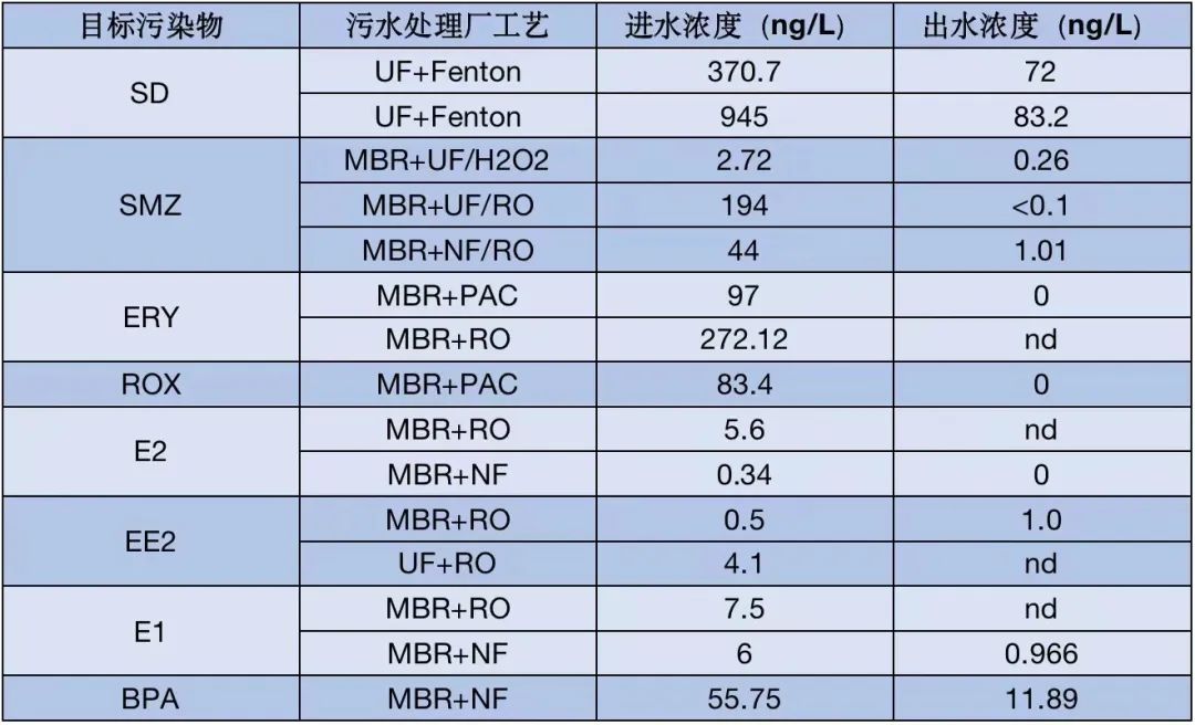 這3種投加方式均可實現對新污染物的穩(wěn)定去除,但對比來看:選擇適宜的PAC,優(yōu)化其投加量可提高吸附去除效率。有研究表明,隨著溶解性有機碳的增加,PAC對新污染物的吸附效率逐漸降低,當二級出水中有機碳在5~10mg/L范圍內時,需要投加10~20mg/LPAC,可達到對新污染物的有效去除(>80%),同時能達到對有機碳最高40%的去除率,水力停留時間為20~30min,PAC的停留時間為1~2d。采用PAC吸附作為升級改造工藝去除新污染物,電能消耗將提高10%~30%,總成本將提高5%~35%。在實際運行中,PAC吸附工藝會產生大量的含炭污泥,使污泥處理能耗相應增加。據研究數據表明,PAC投加量為10~20 mg/L時,PAC吸附工藝的電能消耗約為0.02 kWh/m3,后加砂濾單元產生的電能消耗約為0.06 kWh/m3。采用PAC回流到生物池的工藝比不采用回流的工藝對新污染物的去除率可提高10%~50%,但同時也會增加5%~10%的污泥。GAC過濾器一般置于常規(guī)污水處理廠工藝中的二沉池之后,既可吸附又可過濾,它可以連續(xù)運行,無需后續(xù)的分離步驟。但GAC成本較高,再生困難,因此在實際應用中不如PAC廣泛。活性炭吸附過程受許多因素的影響,包括活性炭本身特性(如所用材料、比表面積和表面化學特性等)、新污染物的物化特性(主要是疏水性、溶解性、電荷和分子大小等)、溶液的化學特性和組分(如可溶解性有機物DOM等)和活性炭投加量、吸附質的濃度等其他基本參數。在新污染物的去除技術中,膜分離技術同樣也受到了很多關注,其中以納濾(NF)和反滲透(RO)對新污染物的去除效果最好。NF和RO技術均采用高壓膜,由于它們的孔徑極小,可以截留較小分子量物質,一般應用于無機離子和有機污染物的截留。RO膜可以有效截留(>90%)水中有機小分子物質;雖然NF膜由于孔徑稍大截留效果不如RO膜,但NF技術的能耗較低,在對新污染物的去除中,具有明顯的操作和成本優(yōu)勢。值得一提的是,低壓膜如微濾(MF)膜和超濾(UF)膜由于孔徑較大,不足以截留大部分 新污染物,但因為污水處理廠二級出水中仍含有相對較高濃度的有機物,會對NF/RO的截留效果造成不利影響,所以MF/UF經常作為NF/RO的前處理工藝。有機物是導致膜污染的主要原因,長期運行時會造成NF/RO膜通量下降、截留效果降低,因此在處理二級出水時,采用MF/UF作為前處理工藝,對于維持NF/RO的長期穩(wěn)定運行十分必要。膜對新污染物的截留率取決于新污染物的物化特性(分子大小和重量,電荷和疏水性)、膜特性(膜材料、孔徑等)及操作條件等。值得一提的是,不同材料的膜對同種新污染物的截留效果不同,同種膜對不同新污染物的截留效果也不同。目前將NF/RO技術作為實際污水處理廠的升級改造工藝的報道并不多,其主要限制因素是能耗較高、膜污染以及膜分離過程中產生大量需要處理的濃縮液等。膜生物反應器(MBR)具有污泥濃度高、生物種類多、出水水質穩(wěn)定、固液分離能力強等特點。MBR的膜表面能夠有效的截留有機污染物,使污染物與污水進行分離,所以MBR對大多數的有機污染物的截留效果較好。但較長的SRT也可能會導致MBR中懸浮基質活性生物量減少,影響對抗生素的去除。而且MBR對有機污染物的去除效率還受到污泥濃度、溫度和pH值等因素的影響。通過研究MBR工藝在污水處理廠中對新興污染物的去除,有學者發(fā)現其對E1、E3和BPA的去除率達到了100%;還有學者利用MBR工藝處理污水中的抗生素和新興生物群落,研究表明其對TC和CTC的去除率分別為93.6%和83.9%。盡管深度處理能夠去除大部分的新污染物,但仍有一部分新污染物沒有被去除。為此,在實際污水處理工藝中通常把多種深度處理技術聯(lián)合使用,取長補短,有效地提高有機污染物的去除效率。根據文獻資料,小編列舉了多種組合工藝對幾種典型新污染物的去除效果,由圖中可以看出組合工藝對于新污染物的去除效率較高。這是一種高效的水處理工藝,對污水處理廠出水水質有了很大的提升,這類聯(lián)合工藝對有機污染物的去除具有顯著的效果以及使用價值。雖然在2015年提出開展全國性環(huán)境激素整體監(jiān)測行動,但由于缺乏環(huán)境內分泌干擾物(EDCs)的篩選和評估框架,以及監(jiān)測范圍和技術限制等原因,導致目前仍然無法全面掌握我國近年來環(huán)境內分泌干擾物(EDCs)的生產、使用和排放現狀。同時,大多數新污染物還未納入環(huán)境監(jiān)測體系內,對于全氟辛烷磺酸(PFOS)等新污染物缺乏監(jiān)管,導致許多全氟辛烷磺酸(PFOS)超標的工業(yè)廢水直接排放。雖然在2005年建立了全國細菌耐藥監(jiān)測計劃,但存在監(jiān)測標準和方法不統(tǒng)一、監(jiān)測覆蓋面不充分、信息公開不夠及時等問題。2、新污染物的管理涉及多個部門,職能交叉,缺乏統(tǒng)籌協(xié)調,污染治理低效例如塑料的生產使用、入海塑料處理、海洋塑料打撈分解、微塑料源頭管控及監(jiān)測等環(huán)節(jié),涉及自然資源部、國家發(fā)展和改革委員會、農業(yè)農村部、生態(tài)環(huán)境部等多個部門。再如抗生素從生產研發(fā)、流通使用到排放監(jiān)測等環(huán)節(jié),涉及衛(wèi)生健康、生態(tài)環(huán)境、食品安全、農業(yè)、醫(yī)藥等部門。更重要的是,新污染物易于在水體和空氣中擴散,部分環(huán)境內分泌干擾物(EDCs)和全氟化合物(PFCs)具有長距離遷移性及環(huán)境累積性,但目前尚