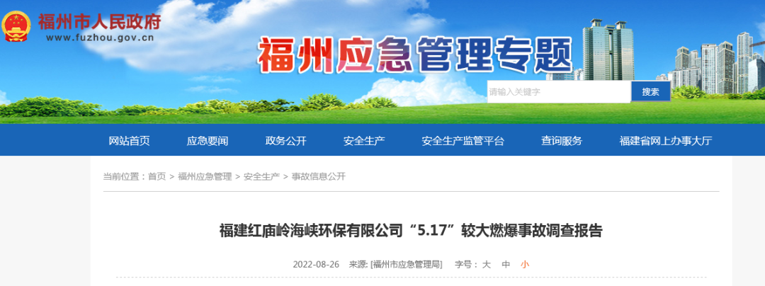 3人死亡!福建紅廟嶺海峽環(huán)保有限公司“5.17”較大燃爆事故調(diào)查報(bào)告公布
