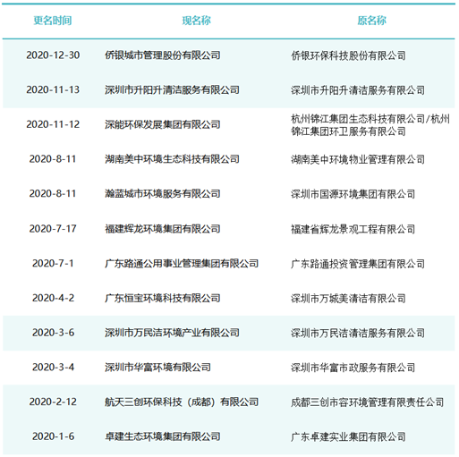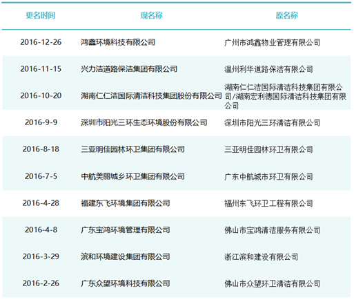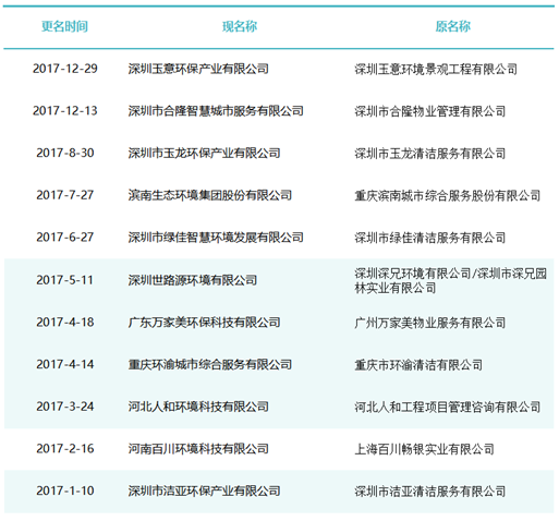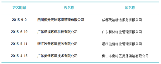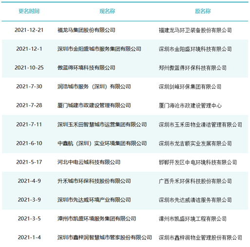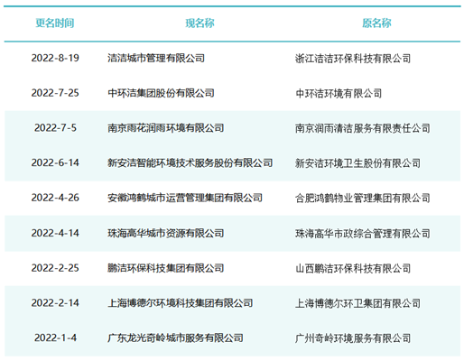 作為玉禾田[300815]最主要的環(huán)衛(wèi)項目投標主體,玉禾田物業(yè)清潔公司在名稱上用“智慧城市運營”替換“物業(yè)清潔”,則是希望轉(zhuǎn)型邁向智慧城市運營商之路。司南君在對近八年的更名規(guī)律進行總結(jié)與梳理發(fā)現(xiàn),環(huán)衛(wèi)企業(yè)“更名潮”大概可以分為三個階段。第一波更名潮從2015-2018年。第一波更名潮追求專業(yè)化發(fā)展道路,這個時期的更名熱詞是“環(huán)境服務”、“環(huán)境科技”、”環(huán)保產(chǎn)業(yè)“、“環(huán)保技術(shù)”,一大批清潔公司、保潔公司、環(huán)衛(wèi)公司、物業(yè)公司更名為“環(huán)境服務公司”、“環(huán)境科技公司”、”環(huán)保技術(shù)公司“。第二波更名潮從2019年到2021年。第二波更名潮集體轉(zhuǎn)向城市綜合服務方向。這一時期的更名熱點是“城市管理”、“城市服務”、“城市管家”、“智慧城市運營”、“公共事業(yè)管理”等,用這些熱詞替代“環(huán)保技術(shù)”、“環(huán)衛(wèi)服務”、“環(huán)境科技”、“環(huán)境服務”等傳統(tǒng)環(huán)衛(wèi)詞匯。進入2022年度,環(huán)衛(wèi)企業(yè)迎來第三波更名潮。今后一定時期,環(huán)衛(wèi)行業(yè)的發(fā)展將面臨多重挑戰(zhàn),環(huán)衛(wèi)企業(yè)更名也將更富多元化,因此企業(yè)更名也必將根據(jù)每家公司對行業(yè)發(fā)展的理解認識及自身戰(zhàn)略定位而各有側(cè)重。2015年到2018年是環(huán)衛(wèi)市場化第一波大發(fā)展時期。這期間,環(huán)衛(wèi)市場化大閘初步敞開,PPP模式引入環(huán)衛(wèi)領(lǐng)域,城鄉(xiāng)環(huán)衛(wèi)一體化模式如火如荼,年化額超千萬元、合同額超億元的環(huán)衛(wèi)大標開始批量出現(xiàn),傳統(tǒng)物業(yè)清潔企業(yè)、非環(huán)衛(wèi)類物業(yè)公司大量涌入環(huán)衛(wèi)行業(yè)。因此,環(huán)衛(wèi)企業(yè)第一波更名潮追求專業(yè)化發(fā)展道路,這個時期的更名熱詞是“環(huán)境服務”、“環(huán)境科技”、”環(huán)保產(chǎn)業(yè)“、“環(huán)保技術(shù)”,一大批清潔公司、保潔公司、環(huán)衛(wèi)公司、物業(yè)公司更名為“環(huán)境服務公司”、“環(huán)境科技公司”、”環(huán)保技術(shù)公司“。這期間有近40家百強企業(yè)或日后發(fā)展成百強企業(yè)的環(huán)衛(wèi)公司完成了更名,如福建東飛環(huán)境集團有限公司、濱南生態(tài)環(huán)境集團股份有限公司、北京慧豐清軒環(huán)境科技集團有限公司、河北人和環(huán)境科技有限公司、浙江波普環(huán)境服務有限公司、深圳市陽光三環(huán)生態(tài)環(huán)境股份有限公司、深圳世路源環(huán)境有限公司(深兄環(huán)境)、廣東美保環(huán)境技術(shù)有限公司、泓欣環(huán)境集團有限公司等。第二波:從“環(huán)衛(wèi)服務”到“城市管家”2019年到2021年是“環(huán)衛(wèi)市場化”高潮向“城市大管家模式”的轉(zhuǎn)型期初期。這期間,環(huán)衛(wèi)市場化從大發(fā)展走向大高潮,城市精細化管理從“理念”走向“實踐”,各路國有物業(yè)公司積極推動城市大管家模式,大批頭部物管企業(yè)通過大并購等方式搶灘環(huán)衛(wèi)及城市服務市場。由此,順應時代大潮,環(huán)衛(wèi)企業(yè)第二波更名潮集體轉(zhuǎn)向城市綜合服務方向。這一時期的更名熱點是“城市管理”、“城市服務”、“城市管家”、“智慧城市運營”、“公共事業(yè)管理”等,用這些熱詞替代“環(huán)保技術(shù)”、“環(huán)衛(wèi)服務”、“環(huán)境科技”、“環(huán)境服務”等傳統(tǒng)環(huán)衛(wèi)詞匯。這期間有40余家知名環(huán)衛(wèi)企業(yè)完成了更名,如僑銀城市管理股份有限公司、北控城市環(huán)境服務集團有限公司、深圳玉禾田智慧城市運營集團有限公司、深圳市鑫梓潤智慧城市管家股份有限公司、康潔科技集團有限公司、西安高科城市服務管理有限責任公司、溫州市鹿城區(qū)城市管理服務有限公司、廣東路通公用事業(yè)管理集團有限公司、深圳市金陽盛城市服務集團有限公司。第三波:多重挑戰(zhàn)并存轉(zhuǎn)型期進入2022年度,環(huán)衛(wèi)企業(yè)迎來第三波更名潮。這一時期也將是城市管家模式完成第一輪測試后的大發(fā)展時期。圖表8:2022年度更名“百強企業(yè)”(截止2022年8月份)今后一定時期,環(huán)衛(wèi)行業(yè)的發(fā)展將面臨多重挑戰(zhàn):(一)以電動環(huán)衛(wèi)車、氫能環(huán)衛(wèi)車等為代表的“新能源化”;(二)以智慧環(huán)衛(wèi)與無人操作環(huán)衛(wèi)裝備為代表的“智能化”;(三)以城市大管家為代表的城市管理“精細化”;(四)以智慧市政、智慧城市為代表的“平臺化”;(五)以新型城鎮(zhèn)化和城鄉(xiāng)融合發(fā)展為代表的“全域化”;(六)城鄉(xiāng)生活垃圾分類“常態(tài)化”……這一時期有太多的不確定性,環(huán)衛(wèi)企業(yè)更名也將更富多元化,因此企業(yè)更名也必將根據(jù)每家公司對行業(yè)發(fā)展的理解認識及自身戰(zhàn)略定位而各有側(cè)重。其實,這個特點,從最近更名的“新安潔”和“中環(huán)潔”的新名稱可見一斑?!靶掳矟崱备靶掳矟嵵悄墉h(huán)境技術(shù)服務股份有限公司”,從“傳統(tǒng)環(huán)衛(wèi)”向
