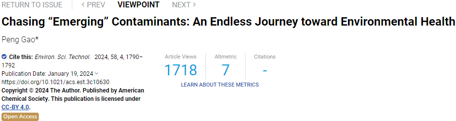 2024年01月19日美國匹茲堡大學(xué)助理教授高鵬博士以“Chasing “Emerging” Contaminants: An Endless Journey toward Environmental Health”為題在EST上發(fā)表了一篇Viewpoint,強(qiáng)調(diào)了關(guān)注新興污染物的同時也需要警惕遺留污染物,并提出了解決這些環(huán)境問題的多種方法和途徑。以下是這篇文章的分享。