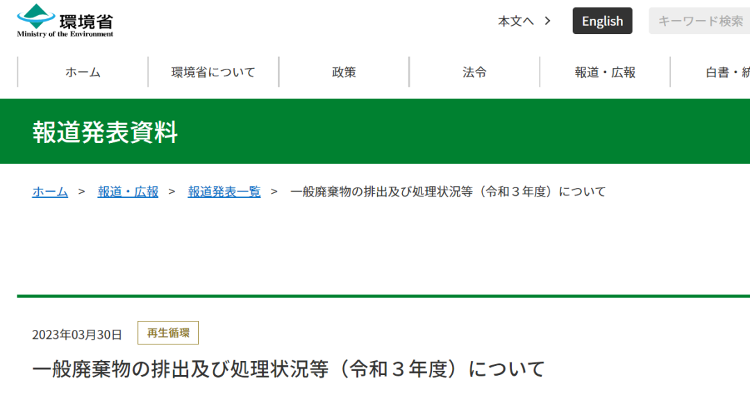 A:日本環(huán)境省令和三年,即2021年垃圾處理報(bào)告