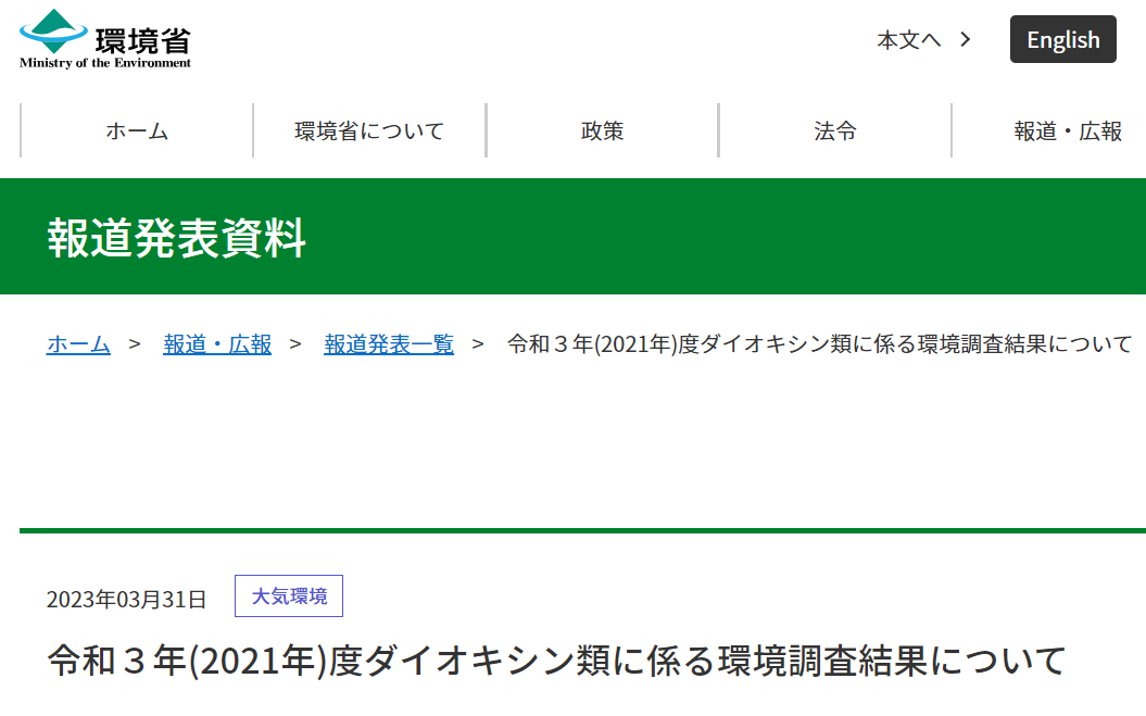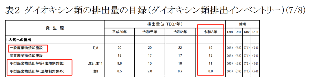 B:日本環(huán)境省令和三年,即2021年二噁英排放清單