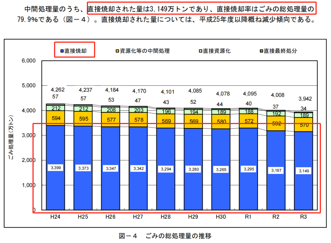 日本2021年,令和三年,垃圾總處理量3942萬(wàn)噸,