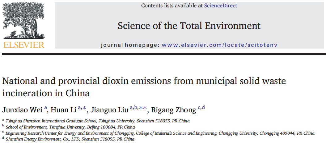 《National and provincial dioxin emissions from municipal solid waste incineration in China》)