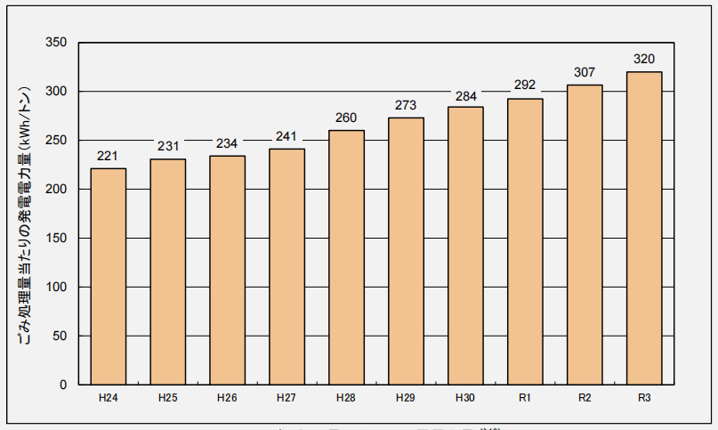 垃圾焚燒設(shè)施的平均發(fā)電量,約為320 kWh/噸。