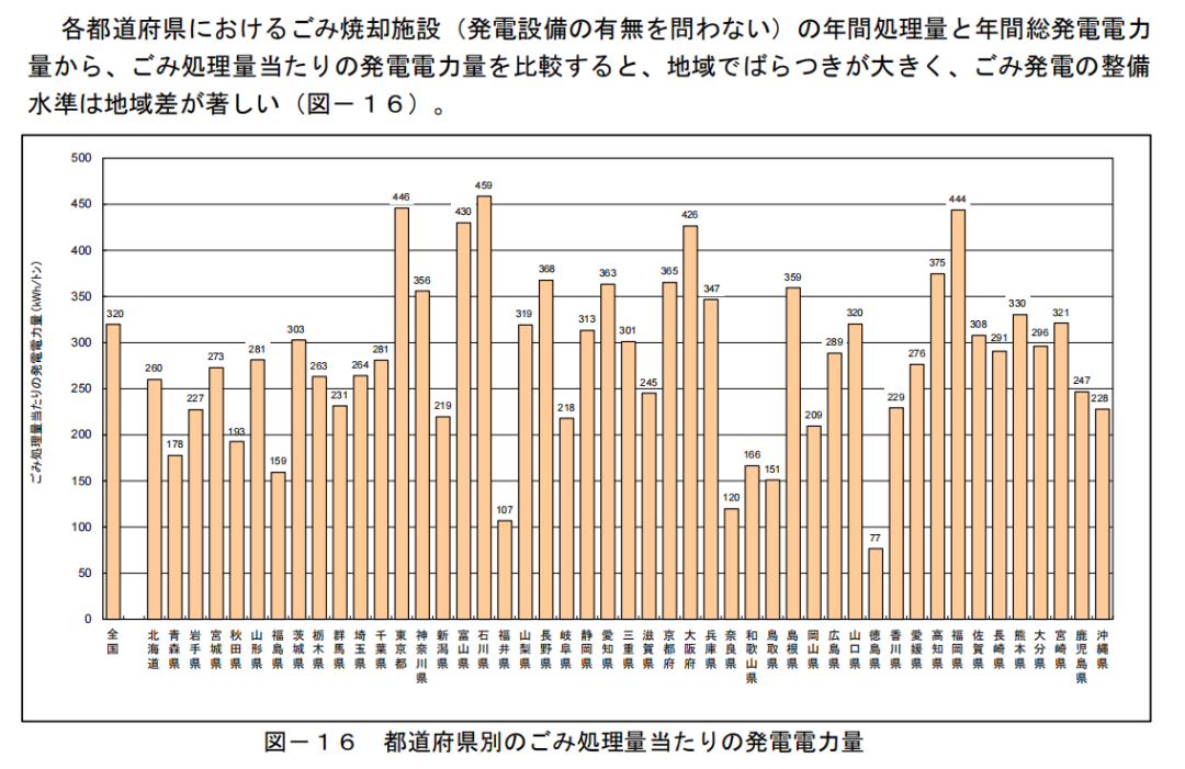 各都道府縣的垃圾焚燒發(fā)電廠,發(fā)電量出現(xiàn)明顯巨大差異。