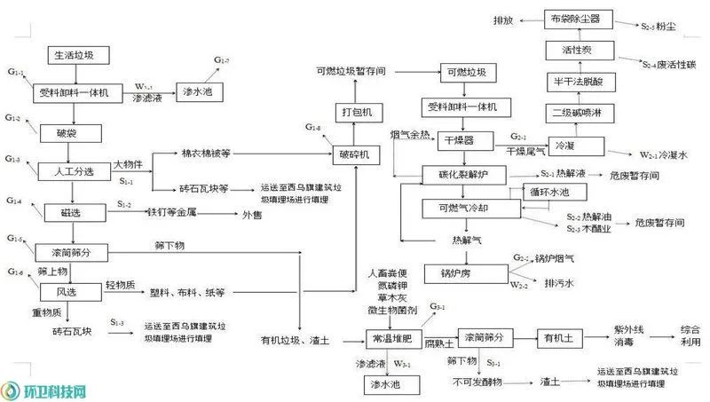 環(huán)境局網(wǎng)站上的公開資料顯示,這座生活垃圾處理項(xiàng)目位于西烏珠穆沁旗巴拉嘎爾高勒鎮(zhèn)西南側(cè)5.5km處,原計(jì)劃采用熱解工藝,主要建設(shè)一座“生活垃圾資源化處理廠及其附屬設(shè)施工程,購(gòu)置生活垃圾處理設(shè)備”,建成后可日處理生活垃圾200噸,主要產(chǎn)品為碳化裂解爐熱解產(chǎn)生的熱解氣467.2萬m3/a和生活垃圾有機(jī)土(常溫)32850t/a。項(xiàng)目總投資6860萬元,資金來源為地方債券和上級(jí)專項(xiàng)資金。其中,環(huán)保投資398萬元,占總投資的5.80%。計(jì)劃于2020年8月開建,2021年12月投產(chǎn)。但至今,項(xiàng)目也只是進(jìn)行了場(chǎng)地平整,尚未建設(shè)投產(chǎn)。關(guān)于變更生活垃圾處理工藝的原因,環(huán)評(píng)文件表示,這是根據(jù)“EPC承包單位多年運(yùn)行經(jīng)驗(yàn)及項(xiàng)目區(qū)域生活垃圾成分復(fù)雜、水分含量高等特點(diǎn),高溫?zé)峤夤に嚿袩o法有效處理當(dāng)?shù)厣罾?,主要體現(xiàn)在熱解爐運(yùn)行不穩(wěn)定、排渣不順暢、產(chǎn)生的可燃?xì)怏w成分復(fù)雜、難以有效利用”。因此,建設(shè)單位根據(jù)需求及同類型企業(yè)實(shí)際生產(chǎn)情況,擬將原有生活垃圾熱解工藝變更為生活垃圾焚燒工藝并配套汽輪發(fā)電機(jī)組。變更后,項(xiàng)目將配置1臺(tái)200t/d機(jī)械爐排爐+1臺(tái)14t/h中溫低壓(400℃,2.5MPa)余熱鍋爐+1臺(tái)額定1.2MW的凝汽式汽輪機(jī)+1臺(tái)1.2MW發(fā)電機(jī),年運(yùn)行時(shí)間8000小時(shí),年平均發(fā)電量960×10^4kWh/a,所發(fā)電量全部用于廠內(nèi)自用。項(xiàng)目總投資仍為6860萬元,但環(huán)保投資增至872.05萬元,占總投資的12.71%。從2020年至今,時(shí)隔4年依舊未動(dòng)工,最終卻由EPC承包單位指出工藝不可行,那這個(gè)胎死腹中的“高溫?zé)峤狻表?xiàng)目究竟是一個(gè)什么樣的處理流程呢?環(huán)評(píng)文件顯示,變更之前,項(xiàng)目生活垃圾綜合利用處理系統(tǒng)由生活垃圾收運(yùn)系統(tǒng)、生活垃圾分選系統(tǒng)、可燃垃圾熱解系統(tǒng)和有機(jī)質(zhì)堆肥發(fā)酵系統(tǒng)四部分組成。其中的垃圾收運(yùn)、垃圾分選和垃圾堆肥基本沒什么好說,我們忽略,重點(diǎn)看垃圾熱解這個(gè)核心工藝。環(huán)評(píng)報(bào)告顯示,項(xiàng)目原計(jì)劃配置一臺(tái)碳化裂解爐,該碳化裂解爐可實(shí)現(xiàn)對(duì)含水量不超過30%、規(guī)格在50-100mm之間的物料進(jìn)行熱解氣化。生活垃圾碳化裂解系統(tǒng)主要包括:干燥脫水系統(tǒng)、碳化裂解系統(tǒng)、出料系統(tǒng)、熱解氣凈化和管網(wǎng)系統(tǒng),其中干燥脫水系統(tǒng)包括:干燥器上料機(jī)、干燥器、干物料儲(chǔ)倉(cāng)等;碳化裂解系統(tǒng)包括:提斗式上料機(jī)、爐頂儲(chǔ)倉(cāng)、密封裝置、螺旋進(jìn)料裝置、高溫密封裝置、反應(yīng)釜、爐體加熱裝置、爐內(nèi)攪拌裝置、攪拌高溫密封裝置、攪拌動(dòng)力裝置、爐內(nèi)余熱回收裝置等;出料系統(tǒng)包括:出料螺旋裝置、出料高溫密封裝置、熱解渣集中出料裝置、熱解氣出氣裝置等;熱解氣凈化和管網(wǎng)系統(tǒng)包括:熱解氣除塵裝置、熱解氣冷卻裝置、真空裝置、水氣分離裝置、木醋液與裂解油分離裝置等。根據(jù)廠家前期測(cè)試數(shù)據(jù),一噸可燃垃圾可產(chǎn)氣200m3,產(chǎn)渣30kg,產(chǎn)木醋液40kg,產(chǎn)焦油2kg,垃圾熱解率為3%。本裝置將物料一次性或連續(xù)性加入反應(yīng)釜內(nèi)進(jìn)行熱解氣化,生成可燃?xì)怏w為混合氣體,主要含有一氧化碳、氫氣、甲烷等。在反應(yīng)釜內(nèi)由上向下通過羅茨鼓風(fēng)機(jī)將氣體輸送至管網(wǎng)。鑒于生物質(zhì)氣所含的主要雜質(zhì)是焦油和灰塵,本項(xiàng)目采用“旋風(fēng)除塵器”、“熱交換器”、“氣液分離器”等對(duì)熱解氣進(jìn)行凈化處理,除掉灰塵和焦油等物質(zhì)。基本生產(chǎn)流程是:可燃垃圾→干燥脫水→碳化裂解→旋風(fēng)除塵→冷卻→氣液分離→阻火→管網(wǎng)→阻火→供氣。熱解產(chǎn)生的熱解氣中約1/3直接用作碳化裂解爐作燃料,剩余約2/3通過地下輸配系統(tǒng)輸送到各用氣設(shè)備,多余燃?xì)膺M(jìn)入火炬燃燒系統(tǒng)。變更前項(xiàng)目生活垃圾處理工程工藝流程如圖1。自從2022年12月,國(guó)家發(fā)改委、住建部、生態(tài)環(huán)境部等五部委聯(lián)合印發(fā)《關(guān)于加強(qiáng)縣級(jí)地區(qū)生活垃圾焚燒處理設(shè)施建設(shè)的指導(dǎo)意見》,明確要求“以中西部和東北地區(qū)、邊境地區(qū)為重點(diǎn),選取人口密度較低、垃圾產(chǎn)生量較少的部分縣級(jí)地區(qū)積極開展小型焚燒試點(diǎn)”之后,國(guó)內(nèi)一度出現(xiàn)一股使用熱解工藝的“小型垃圾焚燒項(xiàng)目”,但對(duì)此工藝的爭(zhēng)議卻一直頗多,焦點(diǎn)就在于熱解到底是否適于處理生活垃圾?熱解,作為一個(gè)誕生于19世紀(jì)的技術(shù),最初是用于煤化工,缺乏油氣資源的德國(guó)人采用熱解工藝處理煤炭,獲取燃油、燃?xì)獾犬a(chǎn)品。后來,人們?cè)谔幚韽U舊塑料、廢輪胎等橡膠制品、醫(yī)療廢物及農(nóng)林生物質(zhì)等固廢時(shí),也采用了熱解技術(shù),效果良好。于是又試圖將熱解技術(shù)引入生活垃圾處理