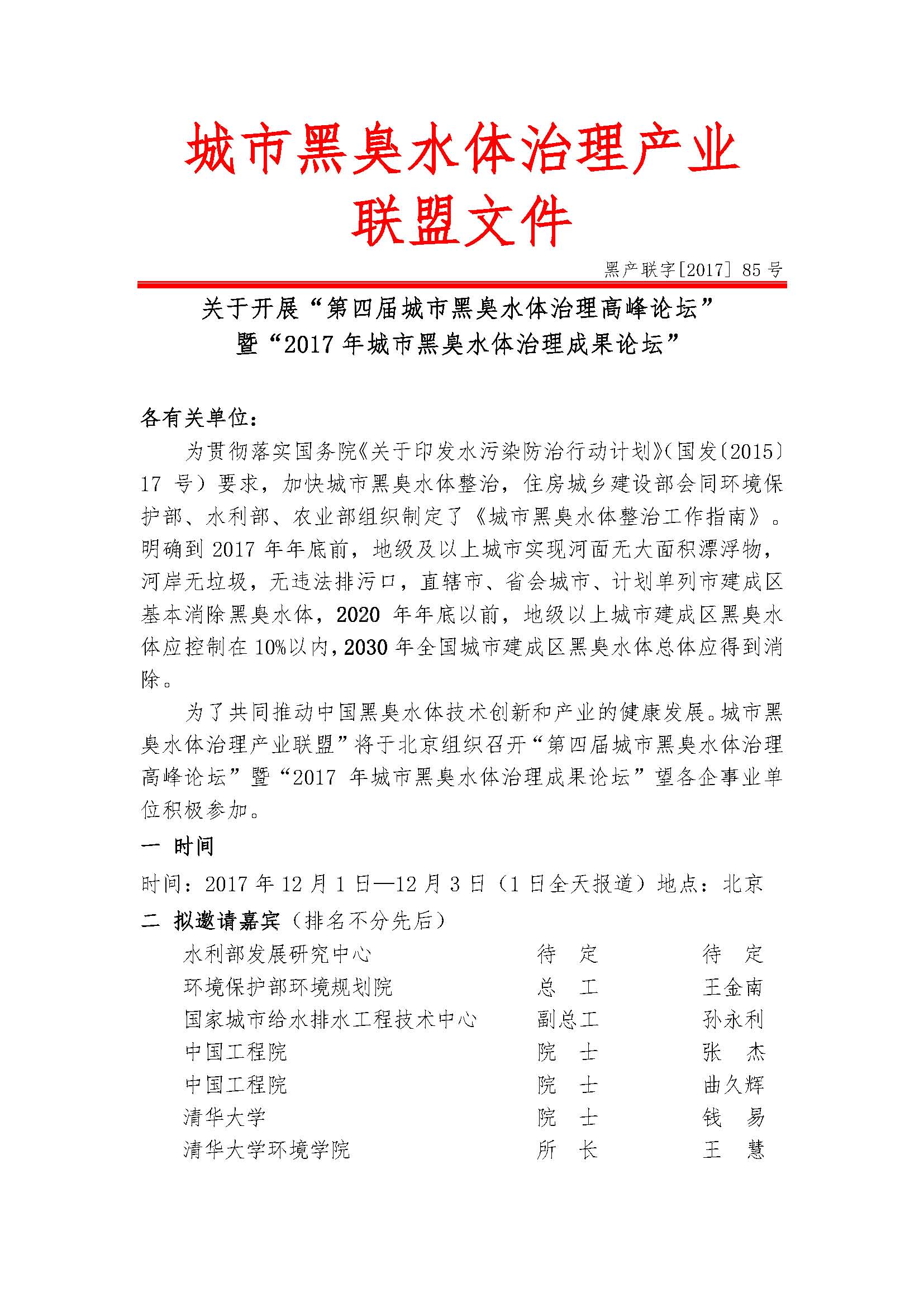 關(guān)于開展“第四屆城市黑臭水體治理高峰論壇” 暨“2017年城市黑臭水體治理成果論壇”