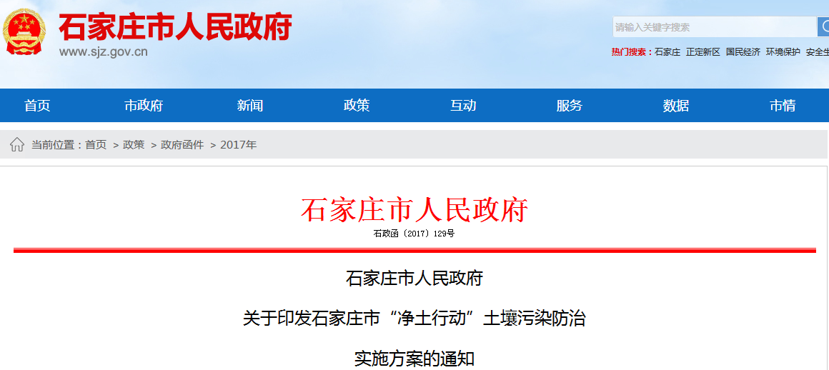 《石家莊市“凈土行動(dòng)”土壤污染防治實(shí)施方案》已經(jīng)市政府第13次常務(wù)會(huì)議研究通過(guò),現(xiàn)印發(fā)給你們,請(qǐng)認(rèn)真貫徹執(zhí)行。