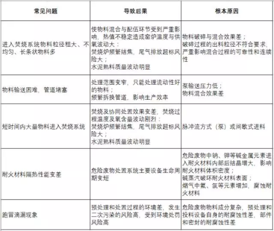 焚燒爐及水泥窯協(xié)同處置線常見問題包括: