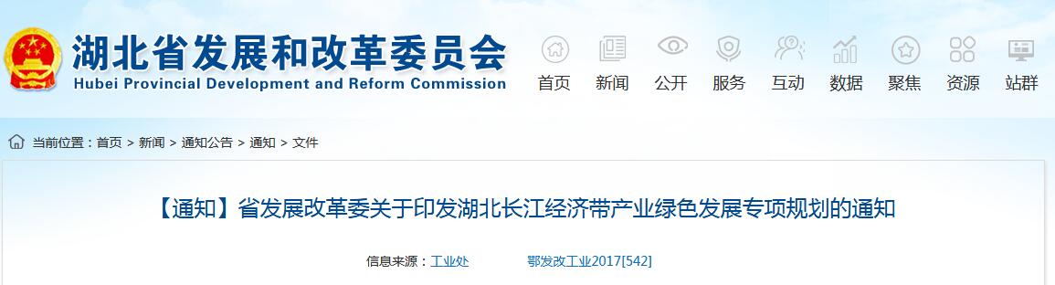 省發(fā)展改革委關(guān)于印發(fā)湖北長江經(jīng)濟(jì)帶產(chǎn)業(yè)綠色發(fā)展專項(xiàng)規(guī)劃的通知