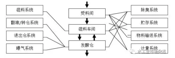 (2)全機械化流程。污泥堆肥全機械化流程需要至少八個目的不同但相互關聯的機械子系統(tǒng)配合完成,如圖2所示。