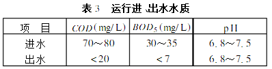 從每天監(jiān)測(cè)的水質(zhì)情況看,CASS工藝經(jīng)過上述各階段的調(diào)試和試運(yùn)行,取得了良好效果。運(yùn)行能耗合計(jì)0127元/(m3?d),實(shí)際運(yùn)行進(jìn)、出水水質(zhì)如表3所示。
