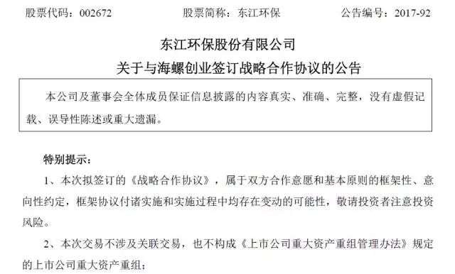 12月4日下午,東江環(huán)保發(fā)布公告稱,公司擬與中國(guó)海螺創(chuàng)業(yè)控股有限公司(下簡(jiǎn)稱“海螺創(chuàng)業(yè)”)于2017年12月6日簽署《戰(zhàn)略合作協(xié)議》,就水泥窯協(xié)同處置固廢事宜達(dá)成戰(zhàn)略合作意向。預(yù)計(jì)雙方將在固廢處理領(lǐng)域?qū)崿F(xiàn)強(qiáng)強(qiáng)聯(lián)合、優(yōu)勢(shì)互補(bǔ),共同推進(jìn)危廢處理行業(yè)的健康發(fā)展。