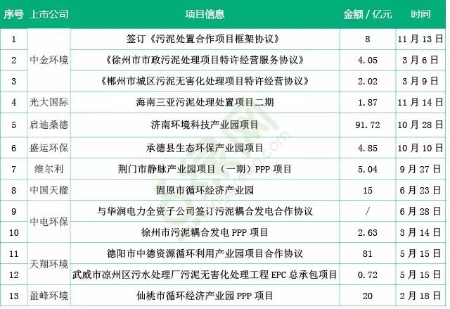 此外,還有光大國際、桑德集團(tuán)、維爾利、盛運環(huán)保、中國天楹等固廢環(huán)保企業(yè)通過拿簽署產(chǎn)業(yè)園項目合作協(xié)議,實現(xiàn)包括污泥處置在內(nèi)的固體廢物無害化、資源化、一體化處置進(jìn)程。例如,盛運環(huán)保產(chǎn)業(yè)園項目中污泥處置不僅包括污水處理廠污泥還包括河道污泥等,維爾利的荊門市靜脈產(chǎn)業(yè)園項目污泥處理規(guī)模為245噸/日。