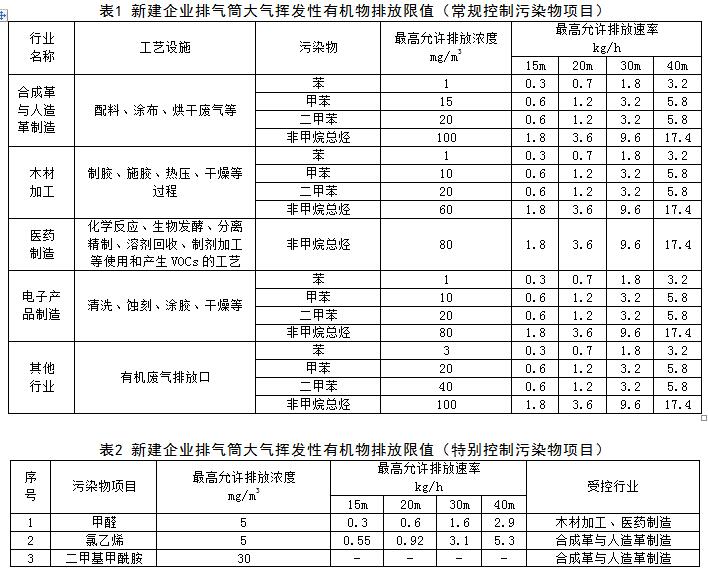 工業(yè)企業(yè)大氣揮發(fā)性有機(jī)物排放標(biāo)準(zhǔn)