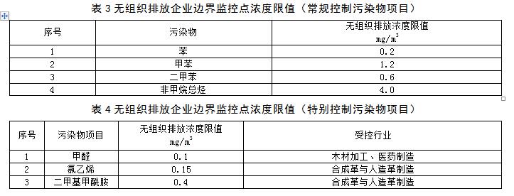 4.4.1無(wú)組織排放企業(yè)邊界監(jiān)控點(diǎn)濃度限值執(zhí)行表3、表4的規(guī)定。
