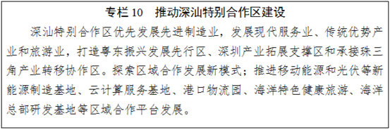 產(chǎn)業(yè)發(fā)展。依托深汕特別合作區(qū),推進(jìn)汕尾主動(dòng)對(duì)接融入深莞惠經(jīng)濟(jì)圈,全面承接深莞惠經(jīng)濟(jì)圈輻射帶動(dòng),打造珠江東岸產(chǎn)業(yè)轉(zhuǎn)移主承接區(qū)。優(yōu)先發(fā)展先進(jìn)制造業(yè)和電子信息產(chǎn)業(yè),提升發(fā)展傳統(tǒng)優(yōu)勢(shì)產(chǎn)業(yè)和旅游業(yè),優(yōu)化發(fā)展現(xiàn)代農(nóng)業(yè),重點(diǎn)發(fā)展能源工業(yè)和以馬宮海洋漁業(yè)科技產(chǎn)業(yè)園為載體的大型深加工漁業(yè),推動(dòng)汕尾臨海能源工業(yè)基地建設(shè);在甲子、后湖海域布局海上風(fēng)電。
