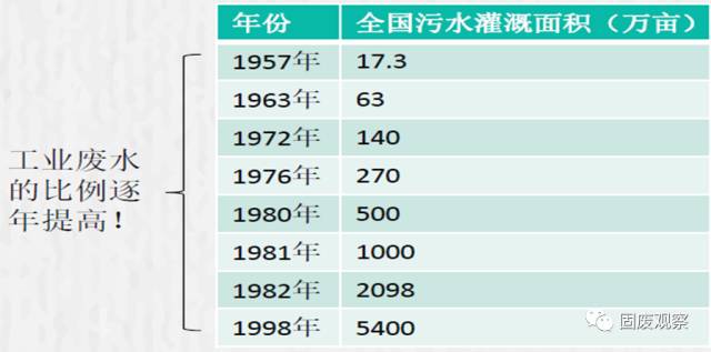 自1957年,建工部聯(lián)合農(nóng)業(yè)部及衛(wèi)生部把污水灌溉列入國(guó)家科研計(jì)劃開(kāi)始,我國(guó)直到2013年1月23日,國(guó)務(wù)院發(fā)布通知,才嚴(yán)禁污水灌溉農(nóng)田。