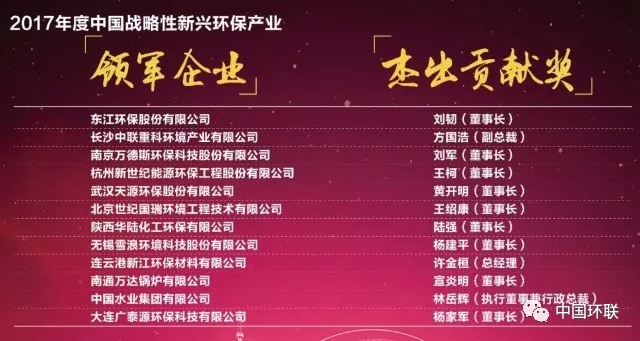 2017年度中國戰(zhàn)略性新興環(huán)保產(chǎn)業(yè)領(lǐng)軍企業(yè)與杰出貢獻(xiàn)獎