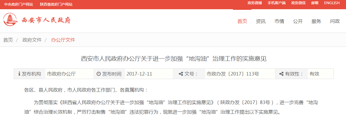 西安市人民政府辦公廳關(guān)于進(jìn)一步加強(qiáng)“地溝油”治理工作的實(shí)施意見(jiàn)