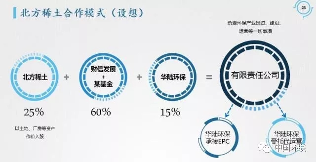 以北方稀土環(huán)保治理為例來(lái)分析,2018年新增的環(huán)保需求為:2000方/天氯化銨廢水處理零排放項(xiàng)目、約10萬(wàn)噸/年的低放射性固體廢棄物處置、約4000噸/年的普通固體廢棄物處置,預(yù)計(jì)總投資額達(dá)1個(gè)億。目前,北方稀土環(huán)保產(chǎn)業(yè)已投入6.7億,每年運(yùn)營(yíng)費(fèi)用5000萬(wàn),環(huán)保企業(yè)參差不齊,達(dá)產(chǎn)效果僅達(dá)40%。針對(duì)北方稀土的環(huán)保需求,華陸環(huán)保提出了基于環(huán)?!傲恪蓖顿Y的合作模式。