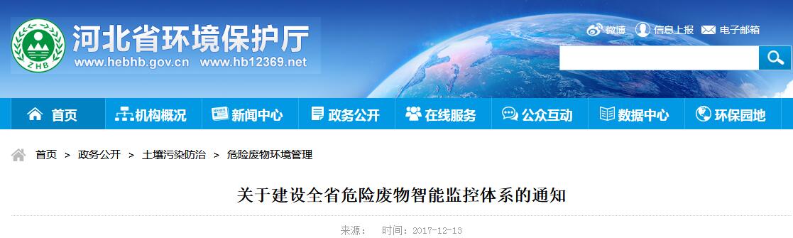 日前,河北環(huán)保廳印發(fā)關(guān)于建設(shè)全省危險廢物智能監(jiān)控體系的通知。通知要求,河北危廢企業(yè)安裝智能監(jiān)控體系。涉及危險廢物(不含醫(yī)療廢物)重點產(chǎn)廢單位(年產(chǎn)100噸以上危險廢物)、自行利用處置危險廢物單位;全省所有危險廢物(不含醫(yī)療廢物)經(jīng)營單位(含收集單位),及符合豁免管理規(guī)定的危險廢物處置、利用單位(以下簡稱豁免管理經(jīng)營單位)。2018年1月31日前,全省所有正常經(jīng)營的危險廢物經(jīng)營單位,完成安裝和聯(lián)網(wǎng)工作。2018年6月30日前,全省所有危險廢物(不含醫(yī)療廢物)重點產(chǎn)廢單位(年產(chǎn)100噸以上危險廢物)、自行利用處置單位、收集單位和豁免管理經(jīng)營單位,完成安裝和聯(lián)網(wǎng)工作。全文如下: