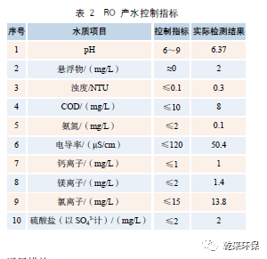 2.2.1 進(jìn)水與產(chǎn)水控制指標(biāo):UF 膜進(jìn)水控制指標(biāo)見(jiàn)表 1,RO 膜產(chǎn)水控制指標(biāo)見(jiàn)表 2。