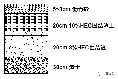 根據(jù)劉勇先生介紹,在上海世博會項(xiàng)目中,傲江公司主要提供HEC高強(qiáng)高耐水土體固結(jié)劑,用于固結(jié)一般土體、特殊土體、砂石集料和工業(yè)廢渣。在世博園區(qū)內(nèi)的施工便道中應(yīng)用,便道長度3km。路面結(jié)構(gòu)為二層8~10%HEC固結(jié)土(40cm),上面直接鋪設(shè)5~8cm瀝青砼面層,開放交通供上鋼三廠的重型卡車行駛,效果良好。