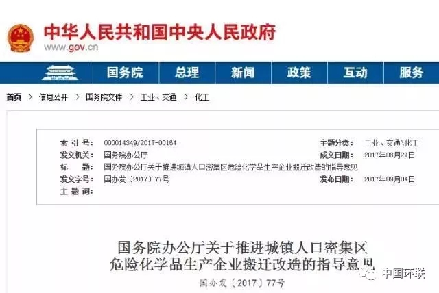 9月4日國務(wù)院辦公廳印發(fā)了《關(guān)于推進(jìn)城鎮(zhèn)人口密集區(qū)危險化學(xué)品生產(chǎn)企業(yè)搬遷改造的指導(dǎo)意見》,《指導(dǎo)意見》明確提出了?;菲髽I(yè)搬遷改造目標(biāo):到2025年,城鎮(zhèn)人口密集區(qū)現(xiàn)有不符合安全和衛(wèi)生防護(hù)距離要求的?;菲髽I(yè)就地改造達(dá)標(biāo)或搬遷進(jìn)入規(guī)范化工園區(qū)或關(guān)閉退出,企業(yè)安全和環(huán)境風(fēng)險大幅降低。其中:中小型企業(yè)和存在重大風(fēng)險隱患的大型企業(yè)2018年前全部啟動搬遷改造,2020年底前完成;其他大型企業(yè)和特大型企業(yè)2020年前全部啟動搬遷改造,2025年底前完成。