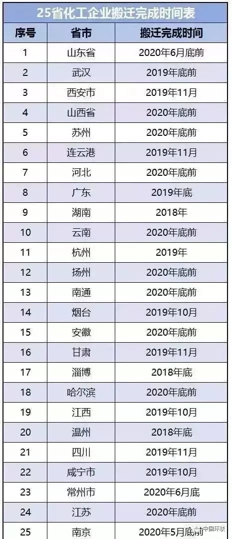 25省市發(fā)布化工企業(yè)搬遷最后時間表