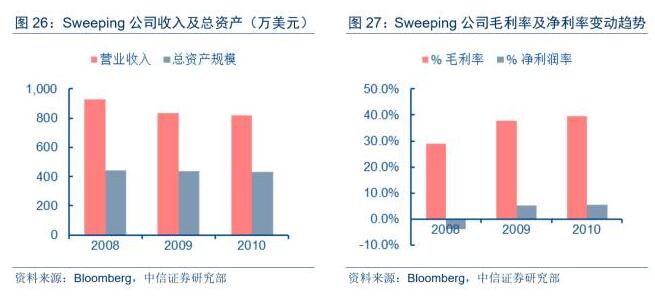 專注于清掃業(yè)務(wù)的SweepingCorporationofAmerica服務(wù)范圍包括美國(guó)八個(gè)州,業(yè)務(wù)涵蓋市郡街道清掃、國(guó)道和州際清掃、道路施工清掃、工業(yè)&制造設(shè)施清掃、商業(yè)和住宅清掃等領(lǐng)域,每個(gè)月清掃里程約25,000英里,客戶名單包括國(guó)家交通運(yùn)輸部門、市郡公共工程部門、大型工業(yè)設(shè)施公司和建筑公司等。截至2010年,公司總資產(chǎn)僅為430萬(wàn)美元,2008~2010年的收入分別為930、830、820萬(wàn)美元,毛利分別為270、310、320萬(wàn)美元,與2016年收入高達(dá)136億美元的固廢處理龍頭公司W(wǎng)asteManagement相比,體量明顯不在一個(gè)數(shù)量級(jí),美國(guó)垃圾清掃市場(chǎng)規(guī)模明顯較小。