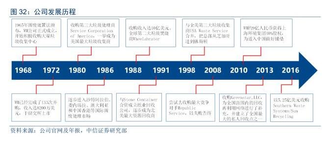 上市之后,公司持續(xù)開啟一系列收購(gòu),僅在在上市后一年半內(nèi)就完成75起并購(gòu)。1998年,公司與全美第三大垃圾收集企業(yè)USAWasteService合并,2008年公司出價(jià)62億美金欲收購(gòu)全美第二大固廢處理企業(yè)RepublicService,但最終沒有獲得成功。在立足美國(guó)的基礎(chǔ)上,WM也在1975~1989年逐步進(jìn)入沙特阿拉伯、阿根廷、澳大利亞、委內(nèi)瑞拉和中國(guó)香港等地區(qū),從事市政垃圾處理。1984年公司收購(gòu)ServicesCorporationofAmercia,收入規(guī)模從10億美元增加到12億美元,一舉成為美國(guó)最大固廢處理公司。
