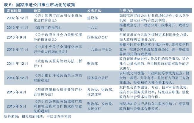 近年來,國(guó)家出臺(tái)一系列相關(guān)政策,構(gòu)建公用事業(yè)市場(chǎng)化框架。一是推進(jìn)政企分開、政事分開,簡(jiǎn)政放權(quán);二是加快推進(jìn)市政公用事業(yè)的市場(chǎng)化進(jìn)程,引入競(jìng)爭(zhēng)機(jī)制,推廣政府和社會(huì)資本合作模式,由政府授權(quán)特許經(jīng)營(yíng),加大政府購(gòu)買服務(wù)力度。在此基礎(chǔ)上,各個(gè)地方也出臺(tái)多項(xiàng)在公用事業(yè)領(lǐng)域引進(jìn)社會(huì)資本投資的政策,要求當(dāng)?shù)丨h(huán)衛(wèi)監(jiān)管部門從“管干一體”轉(zhuǎn)型為專業(yè)監(jiān)督管理組織,將環(huán)衛(wèi)服務(wù)項(xiàng)目向社會(huì)公開招投標(biāo),進(jìn)行市場(chǎng)化運(yùn)作,在服從管理機(jī)構(gòu)調(diào)度的前提下,自負(fù)盈虧。這一系列舉措核心是避免政府成為單一投資主體,實(shí)行政府和社會(huì)資本的合作模式,使得環(huán)衛(wèi)服務(wù)業(yè)走向市場(chǎng)化之路。