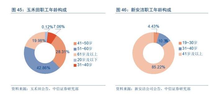 目前國(guó)內(nèi)環(huán)衛(wèi)行業(yè)的勞動(dòng)力密度程度高且勞動(dòng)力老齡化問題突出。環(huán)衛(wèi)服務(wù)業(yè)很多從業(yè)人員已經(jīng)超過退休年齡。從玉禾田和新安潔兩家環(huán)衛(wèi)公司職工年齡統(tǒng)計(jì)可以看到,40歲以上員工占大部分,其中51歲以上比例也不小。如果只對(duì)環(huán)衛(wèi)一線員工進(jìn)行統(tǒng)計(jì),老齡員工占比會(huì)進(jìn)一步提升。向前看,老齡化未來會(huì)隨著人口紅利的喪失會(huì)變得更加突出。