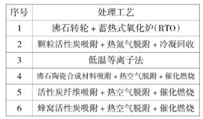 針對(duì)船舶涂裝的特點(diǎn),適用于船舶涂裝VOCs處理工藝主要有六種(如表1)。