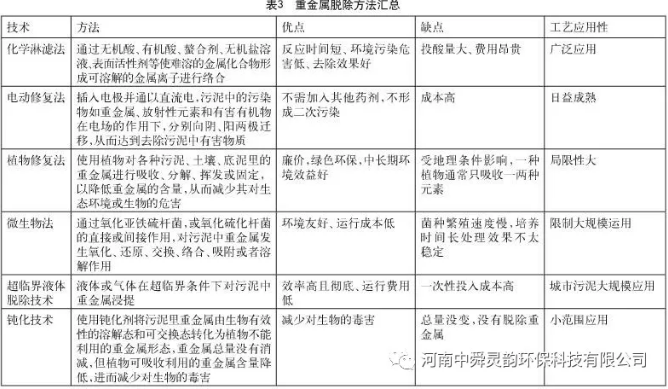 該法工業(yè)應(yīng)用成本低、可操作性強(qiáng),短期效果明顯,國(guó)內(nèi)普遍使用此技術(shù)。但這種方法本身并不能降低污泥中重排和農(nóng)用,外界物理化學(xué)條件的改變,可能使重金屬再次分解和釋放,造成再次污染。因此需要對(duì)固化的污泥土壤進(jìn)行長(zhǎng)期跟蹤觀測(cè)。脫除重金屬技術(shù)就是將污泥和土壤中的重金屬去除掉,從根本上降低污染的風(fēng)險(xiǎn)源。目前常見(jiàn)的方法有化學(xué)淋洗法、電化學(xué)修復(fù)法、熱化學(xué)轉(zhuǎn)化法、生物修復(fù)法、生物淋濾法、吸附法等(見(jiàn)表3)。