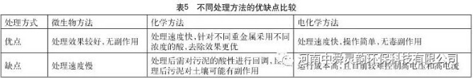 從表4可以看出,采用化學(xué)方法和微生物方法的處理費(fèi)用較為接近,相對(duì)于電化學(xué)法更經(jīng)濟(jì),且處理效果較好。電化學(xué)方法處理費(fèi)用偏高,但其處理方式更便于操作。針對(duì)不同處理方法的優(yōu)缺點(diǎn)進(jìn)行總結(jié),結(jié)果如表5所示。