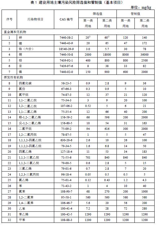 建設(shè)用地土壤污染風(fēng)險(xiǎn)管控標(biāo)準(zhǔn)