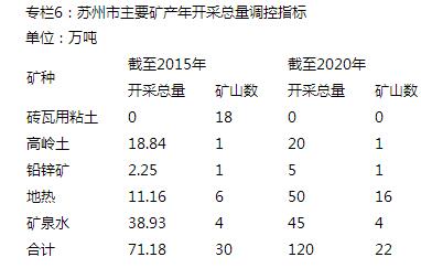 專欄6:蘇州市主要礦產(chǎn)年開采總量調(diào)控指標