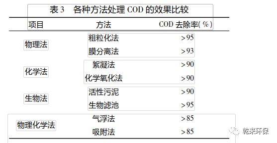 ( 2) 油田含油污水中 COD 去除率物理化學(xué)法相 對低,可達(dá) 80% ; 生物法相對高,可達(dá) 95% 。