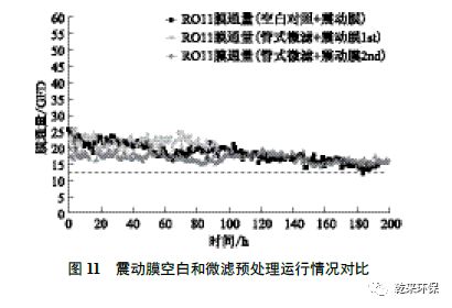 圖11 為震動(dòng)膜空白和使用兩次微濾預(yù)處理的運(yùn)行結(jié)果對比。