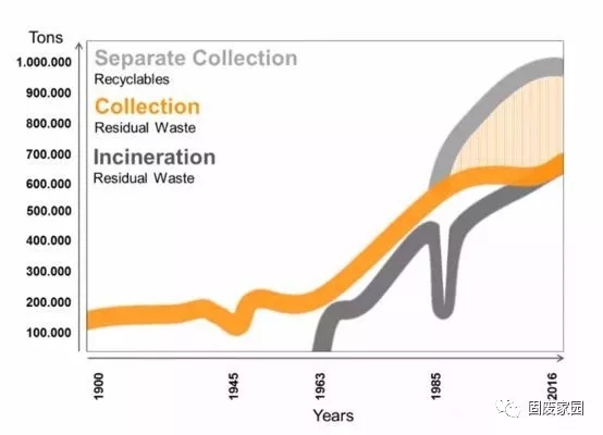 1960 年左右,二戰(zhàn)后的維也納經(jīng)濟(jì)復(fù)蘇,伴隨著人口增長,加上包裝行業(yè)新起,垃圾數(shù)量迅速增長。也是在那個時間段,維也納開始焚燒垃圾,并且在 1980 年代開始將垃圾區(qū)分為可回收和不可回收。此后垃圾數(shù)量有增無減,直到2016年才相對穩(wěn)定。