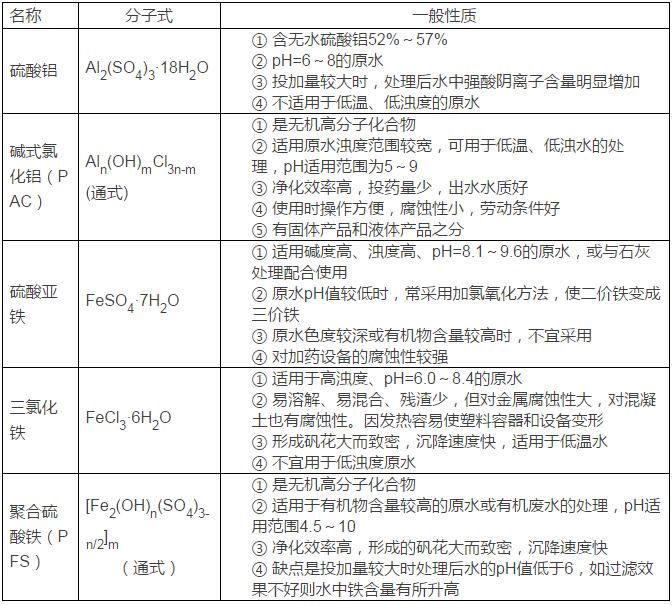 表1-1 常用混凝劑名稱及性質(zhì)