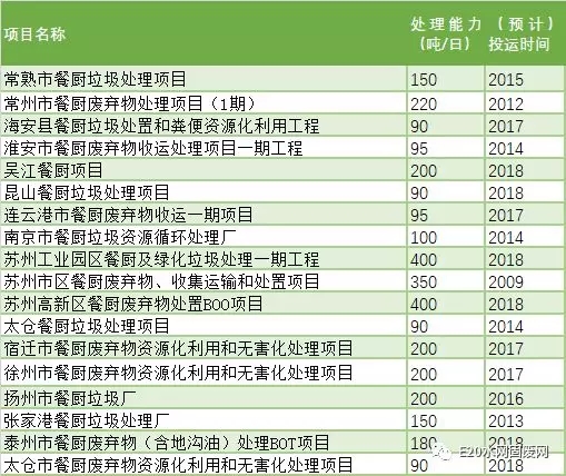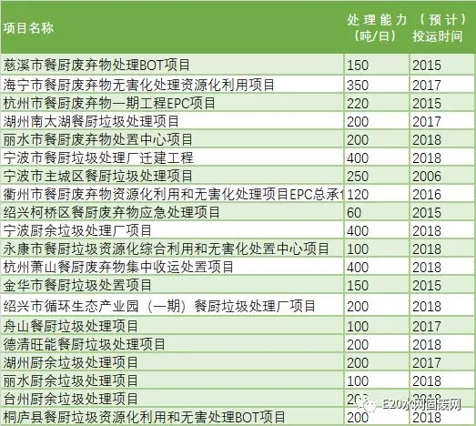 據(jù)E20研究院統(tǒng)計,截止到2017年11月,江蘇省已建(含在建)餐廚垃圾處理項目共計18個,設計處理能力為3300噸/日。浙江省則建有餐廚、廚余垃圾處理項目20個,處理能力達4300噸/日。