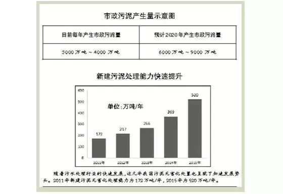 截至2016年3月,我國已建3910多座城鎮(zhèn)污水處理廠,污水處理能力已達(dá)到1.67億立方米/日。作為污水的衍生品,我國每年產(chǎn)生3000萬噸-4000 萬噸市政污泥(含水率在80%)?!敝袊こ淘涸菏亢盍苍谌涨芭e辦的“2016污泥高峰論壇(第三屆)”上表示,預(yù)計(jì)到2020 年,我國的市政污泥產(chǎn)量將達(dá)到6000萬噸-9000 萬噸。