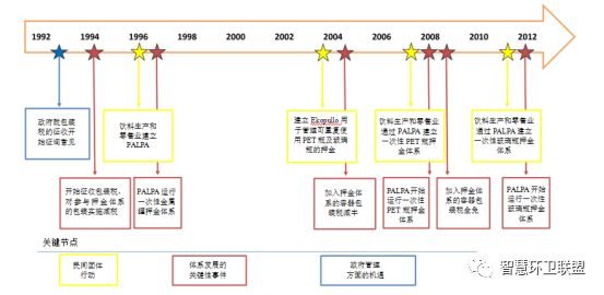 飲料工業(yè)是PALPA及金屬罐押金體系建立的倡議者,而零售業(yè)也積極地參與其中。生產(chǎn)和銷售雙方的共同目的均為使用一次性金屬罐替代可重復(fù)使用的玻璃瓶,原因是與玻璃瓶相比,金屬罐的管理難度更低,能夠壓縮運(yùn)輸,可以節(jié)省大量的空間。然而,由于包裝稅的征收,即便是采取了針對(duì)押金體系的減稅措施,一次性金屬罐也因?yàn)榘b稅而未能替代可重復(fù)使用的玻璃瓶。2004年時(shí),包裝稅接受了修訂,使稅率減半,并且提出要在4年后完全免稅,才令一次性包裝得到了快速的普及。此外,2004年的修訂,也為一次性PET瓶和塑料瓶押金體系的引入創(chuàng)造了條件。