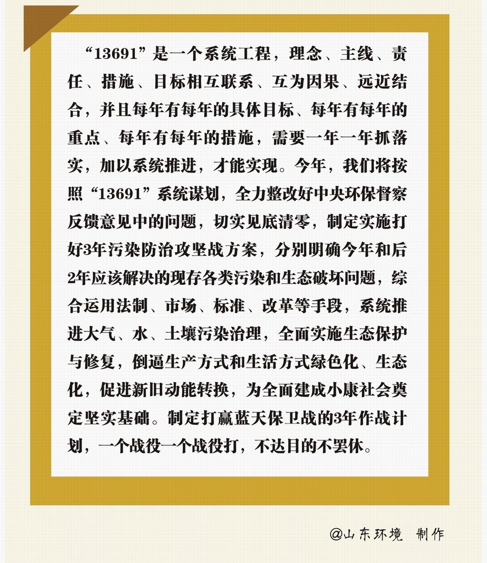 前言:2018年,山東省將按照“13691”系統(tǒng)謀劃,全力改好中央環(huán)保督察反饋意見(jiàn)中的問(wèn)題,切實(shí)見(jiàn)底清零,制定實(shí)施打好3年污染防治攻堅(jiān)站方案,分別明確今年和后2年應(yīng)該解決的現(xiàn)存各類污染和生態(tài)破壞問(wèn)題,綜合運(yùn)用法治、市場(chǎng)、標(biāo)準(zhǔn)、改革等手段,系統(tǒng)推進(jìn)大氣、水、土壤污染治理,全面實(shí)施生態(tài)保護(hù)和修復(fù),倒逼生產(chǎn)方式和生活方式綠色化、生態(tài)化,促進(jìn)新舊功能動(dòng)能轉(zhuǎn)換,為全面建成小康社會(huì)奠定堅(jiān)實(shí)基礎(chǔ)。制定打贏藍(lán)天保衛(wèi)戰(zhàn)的3年作戰(zhàn)計(jì)劃,一個(gè)戰(zhàn)役一個(gè)戰(zhàn)役打,不達(dá)目的不罷休。